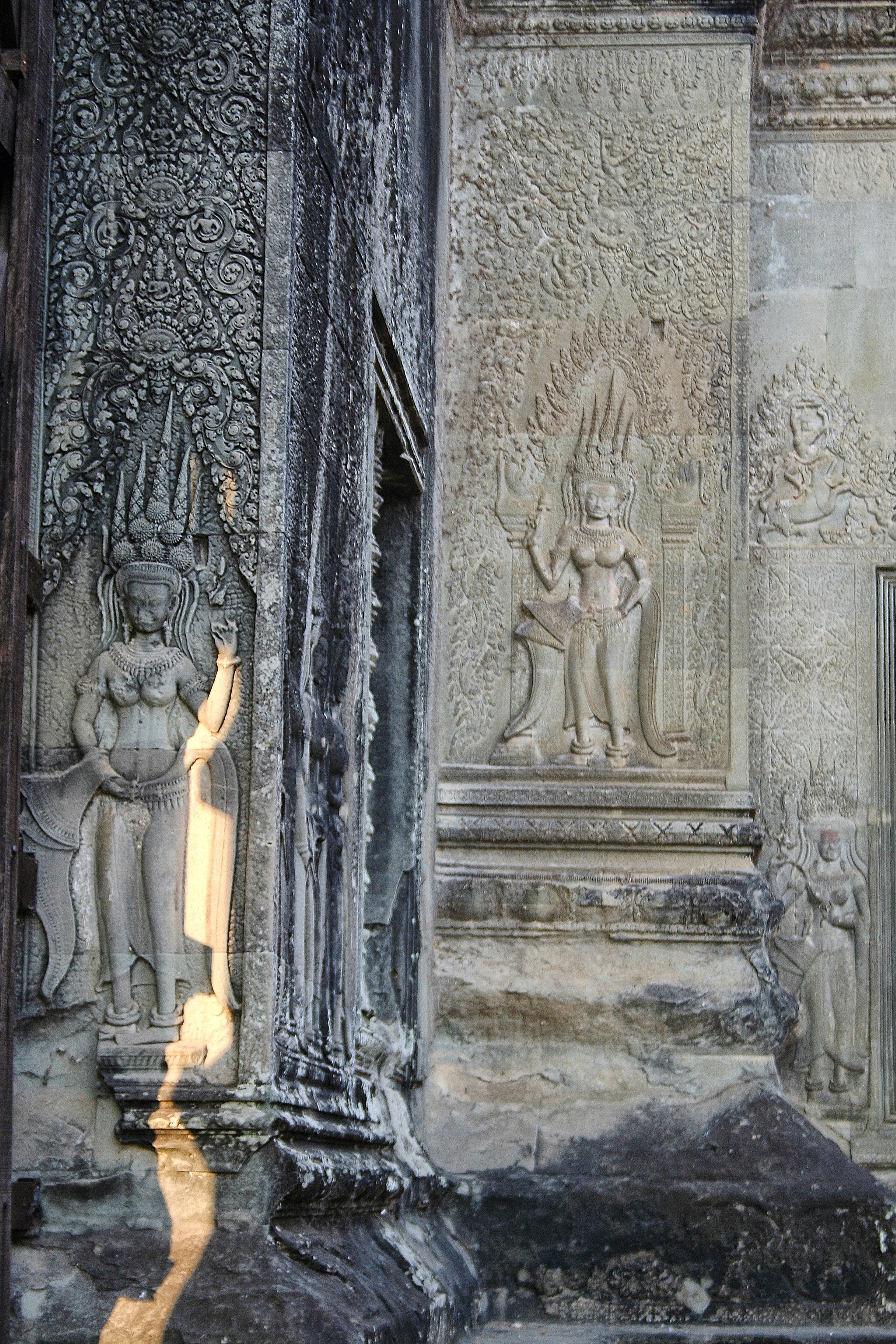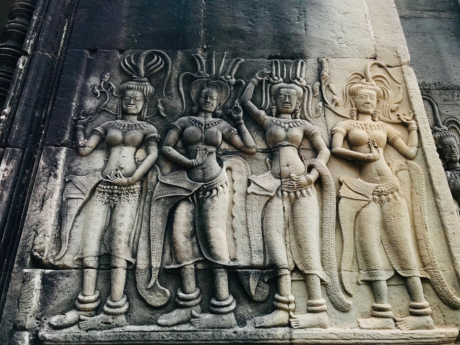ប្រាសាទ អង្គរវត្ត ស្ថិតក្នុងរចនាបថ អង្គរទី២ ដែលមានសិល្បៈនៃការកំណត់ដាច់ដោយឡែកហៅថា សិល្បៈអង្គរវត្ត ដែលជ្រុងនៃថែវនីមួយៗរបស់ប្រាសាទបានឆ្លាក់នៅចម្លាក់ក្បាច់យ៉ាងច្រើនស្អេកស្កះផងដែរ ។ ប្រាសាទ អង្គរវត្ត មានចម្លាក់អប្សរាប្រមាណជា ២,០០០ ចម្លាក់ដែលជាស្នាដៃដ៏អស្ចារ្យ ដែលអាចឆ្លាក់រូបទាំងអស់នោះក្នុងទំហំប៉ុនៗគ្នា និង មានទម្រង់នៃមូដសក់ខុសគ្នាប្រមាណជា ៣៧ ប្រភេទ ដែលចម្លាក់អប្សារាទាំងនេះអាចបែងចែកនៃការឆ្លាក់នូវចម្លាក់មូដសក់ខុសគ្នាក្នុងទម្រង់ដ៏ច្រើននិងមិនគួរឱ្យជឿ ។